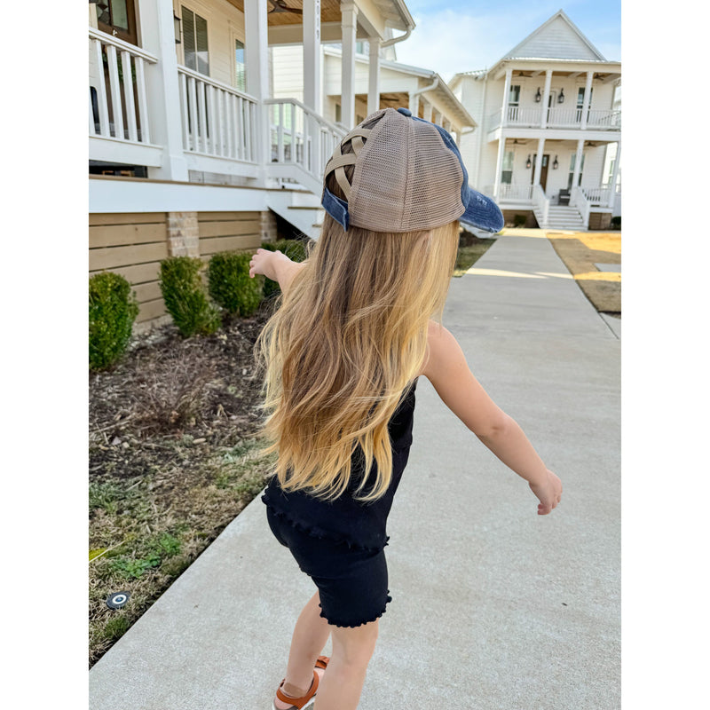 KIDS Distressed Criss-Cross High Ponytail CC Ball Cap KIDSBT780
