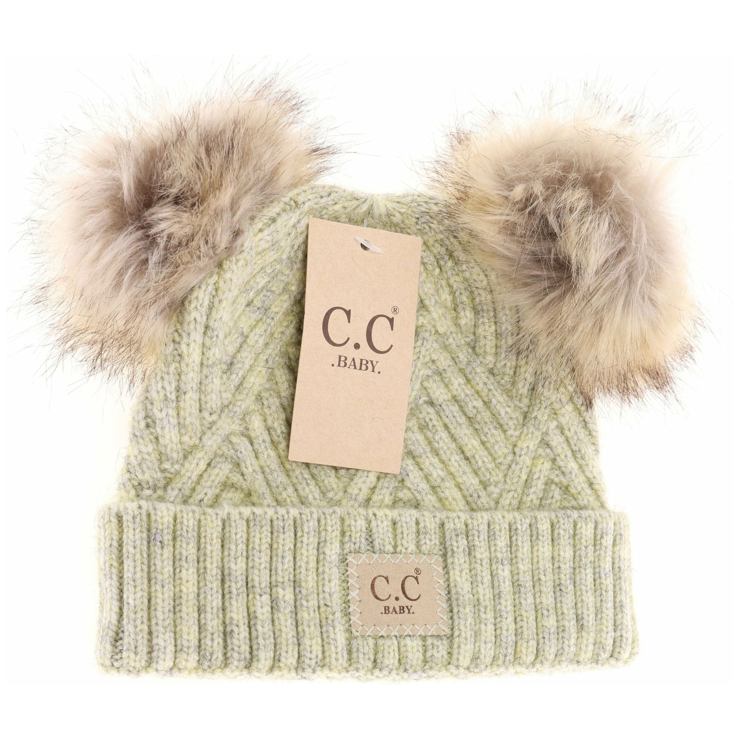 BABY Large Patch Heathered Double Pom C.C Beanie BABY2060POMPOM