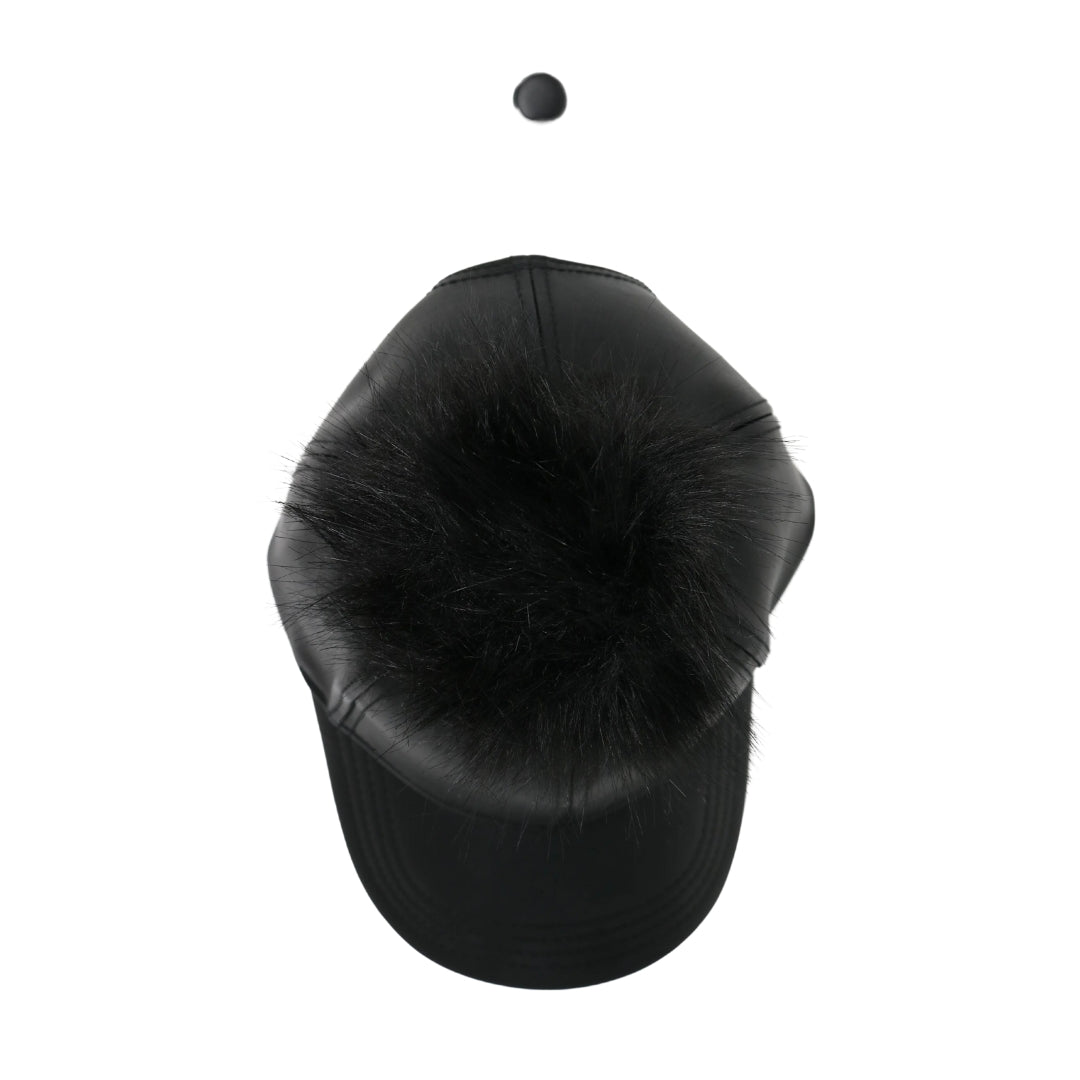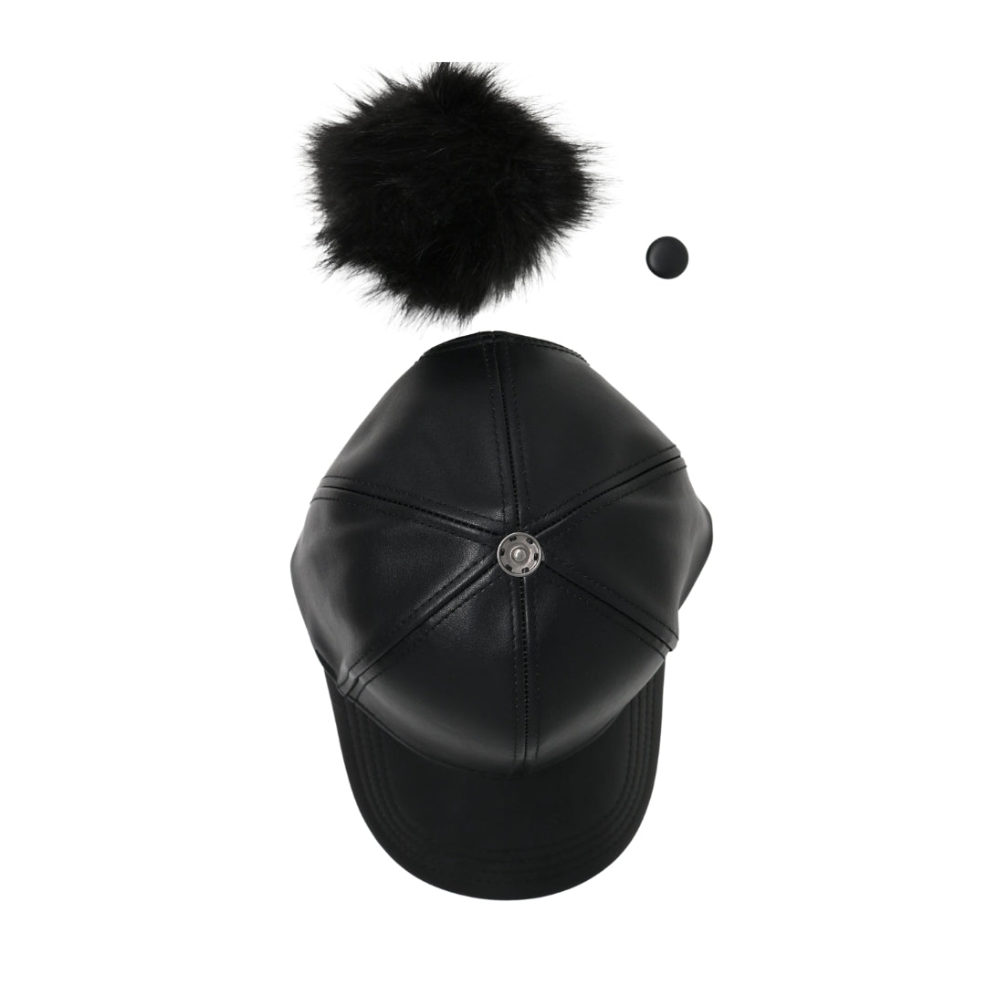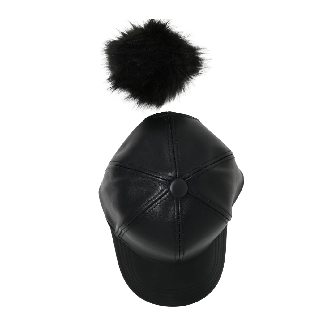 Faux Leather Fur Pom CC Ball Cap BA13