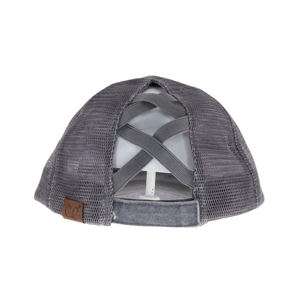 Distressed Embroidered Peace Sign Criss Cross High Pony C.C Ball Cap BT1017
