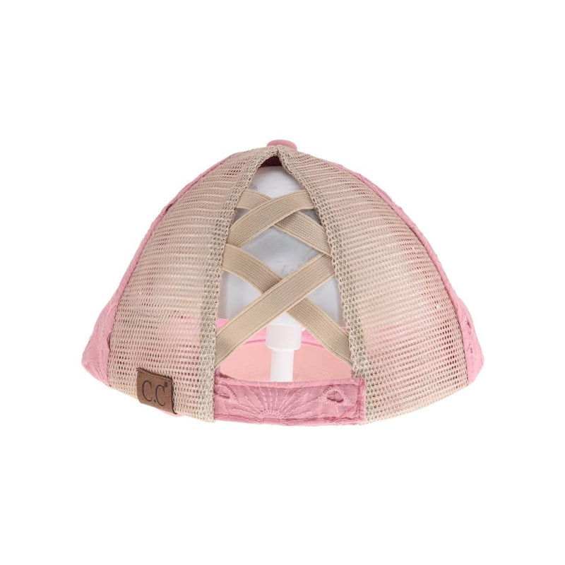 Embroidered Floral Cotton Eyelet Criss Cross High Pony C.C Ball Cap BT1016