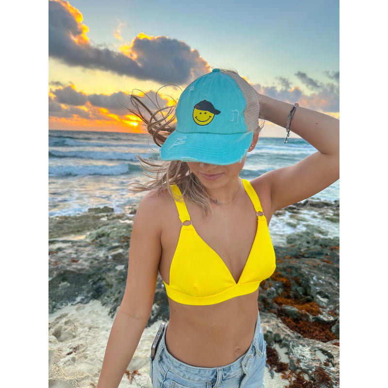 C.C Smiley Face Embroidered Criss Cross High Pony C.C Ball Cap BT1015