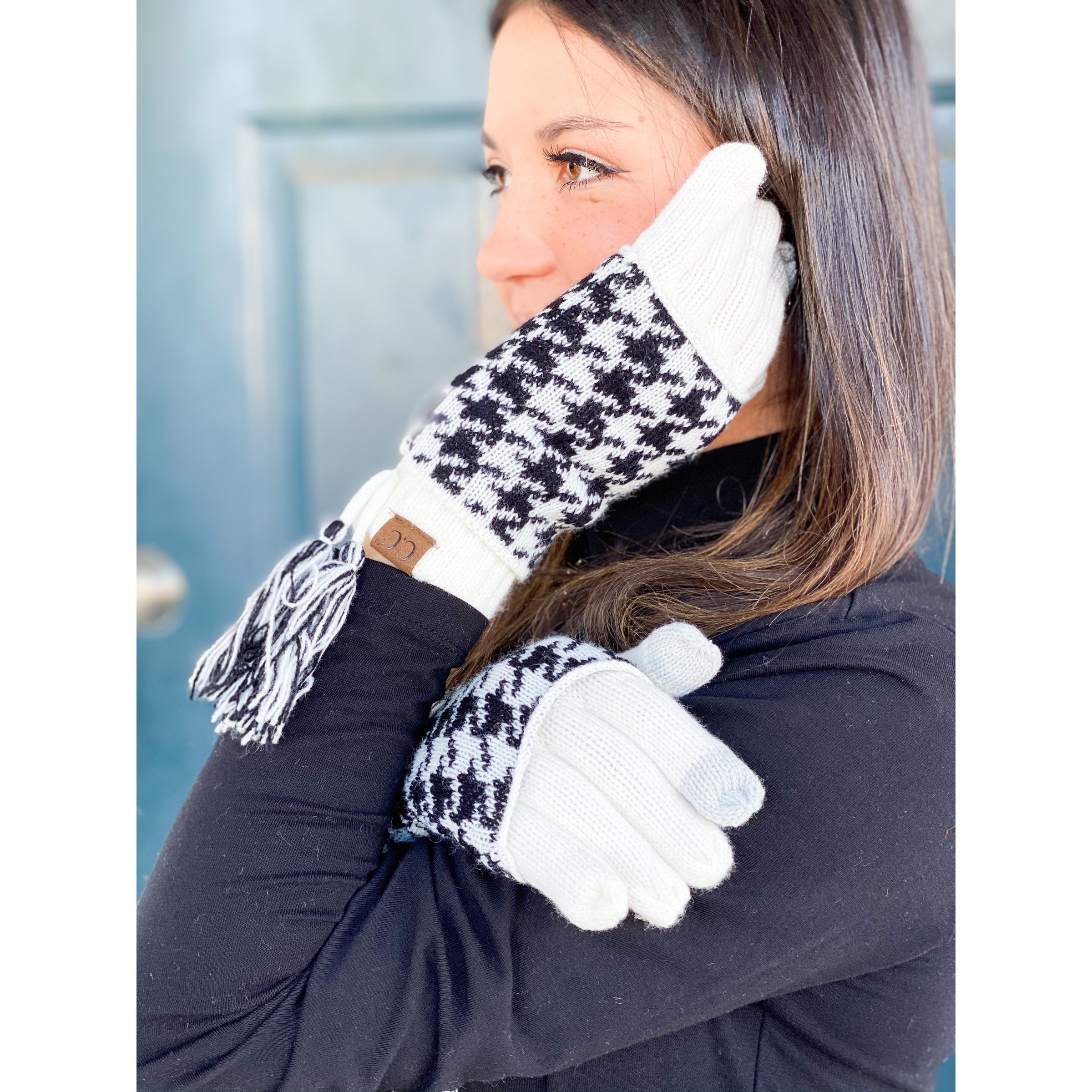Your favorite print now made into gloves! These Houndstooth CC Gloves are sure to be your favorite this Winter! Match it up with the Houndstooth Scarf and Beanie for a perfect match!