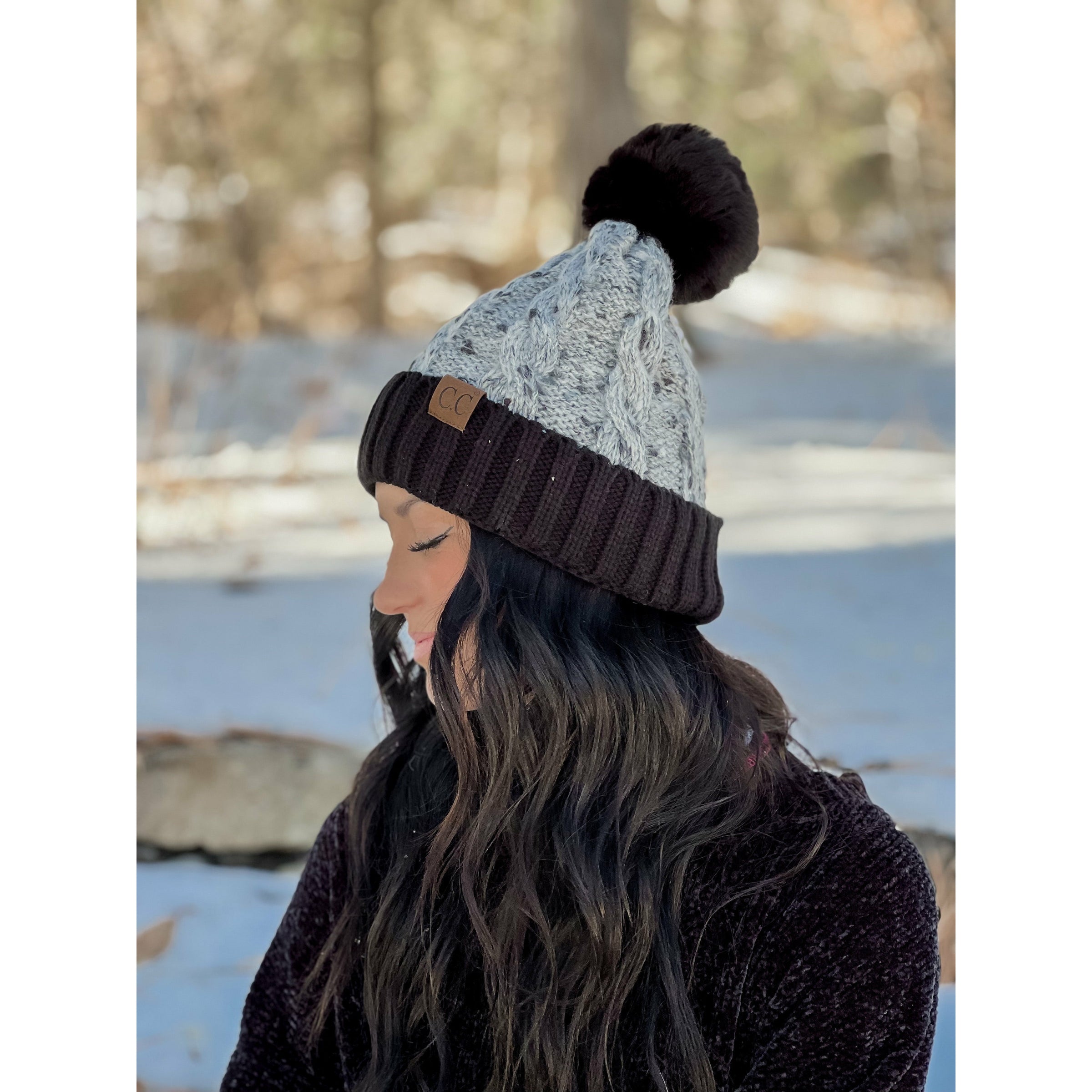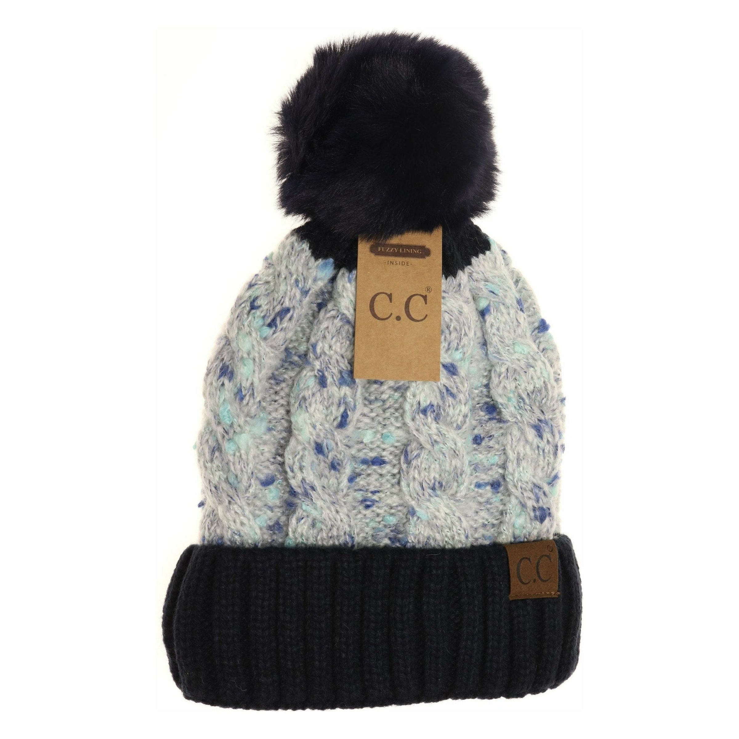 Confetti Cable Knit Faux Fur Pom Beanie HAT3621