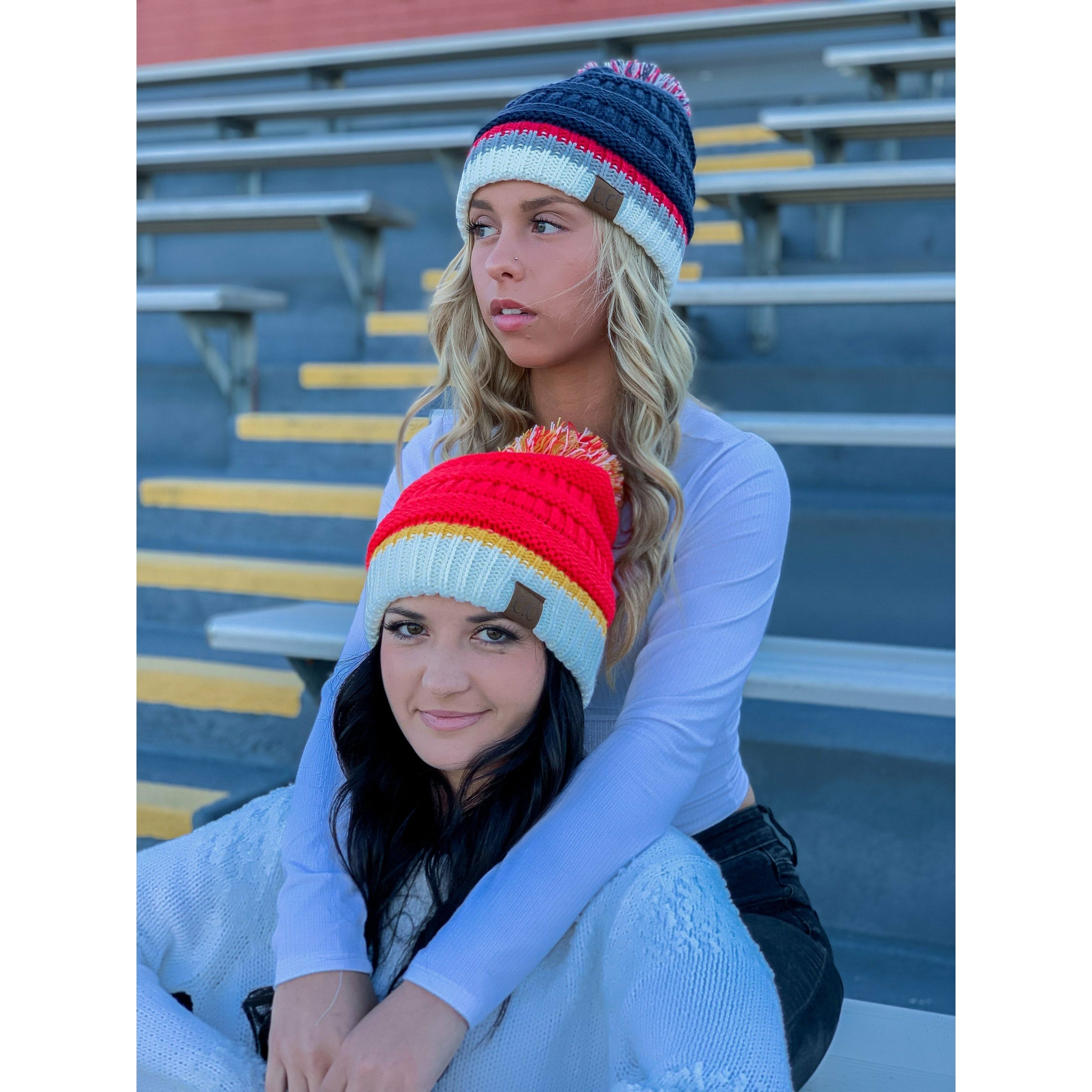 Support your favorite Pro Football team in style with these all NEW TEAM Colored CC Beanies with a pom!