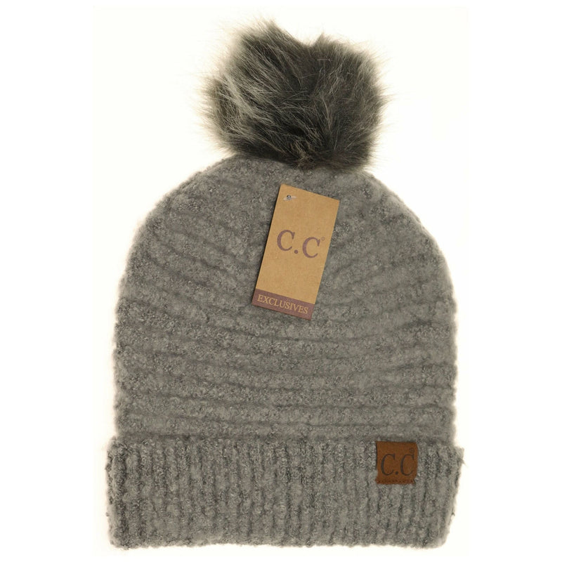 Soft Ribbed Fur Pom C.C Beanie HAT2074