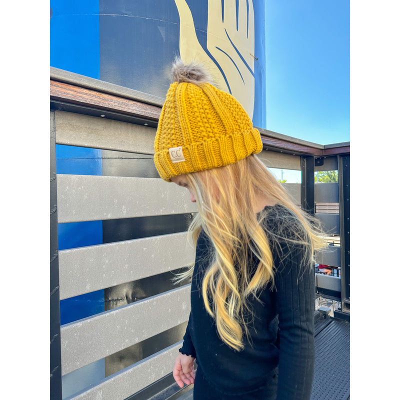 Kids Fuzzy Lined Fur Pom CC Beanie YJ820KIDS