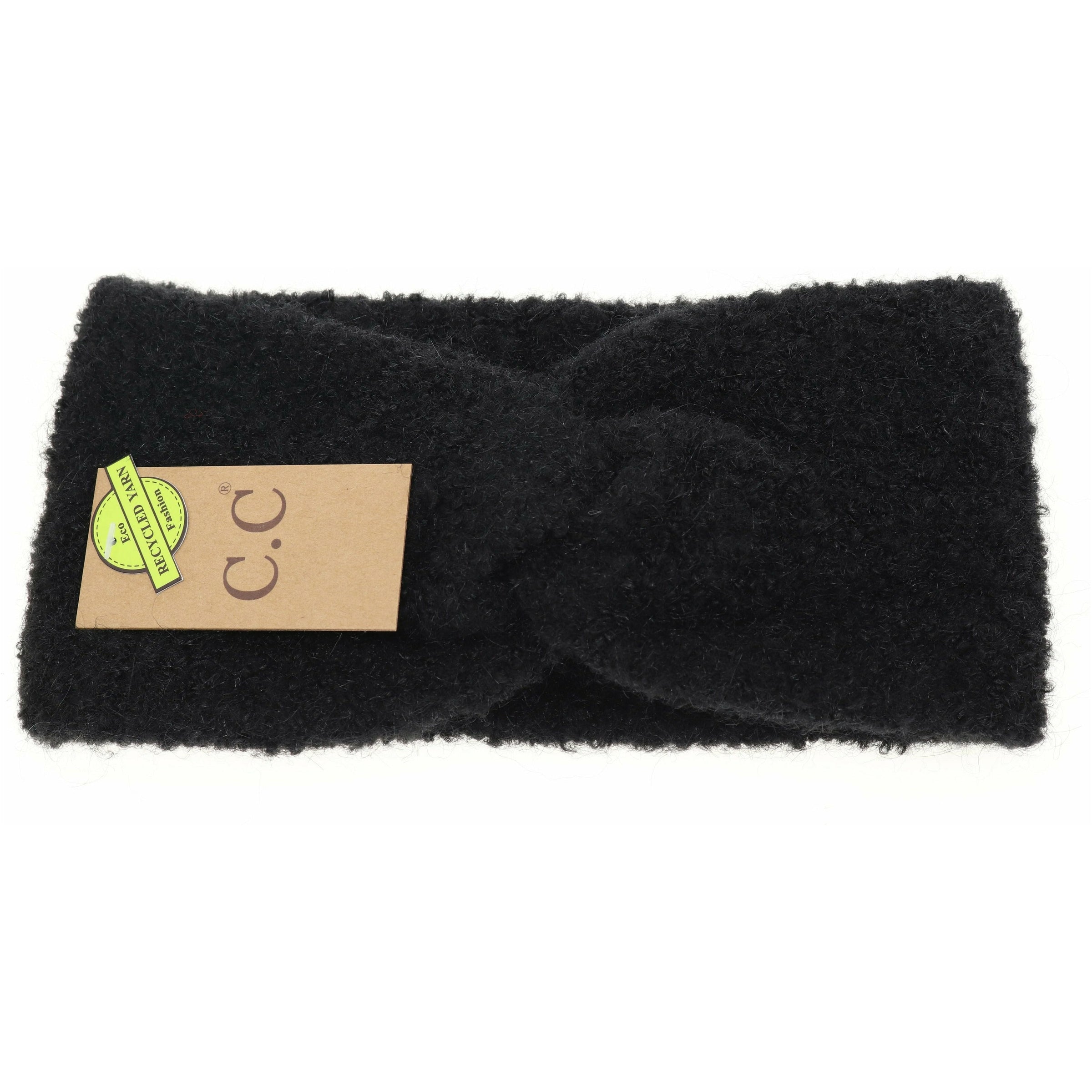 This sweet head wrap is made of eco-friendly shearling yarn.  It has a soft touch, easy stretch and a beautiful marled color to it.  We added a fashionable twist on top to make this new head wrap swoon worthy!