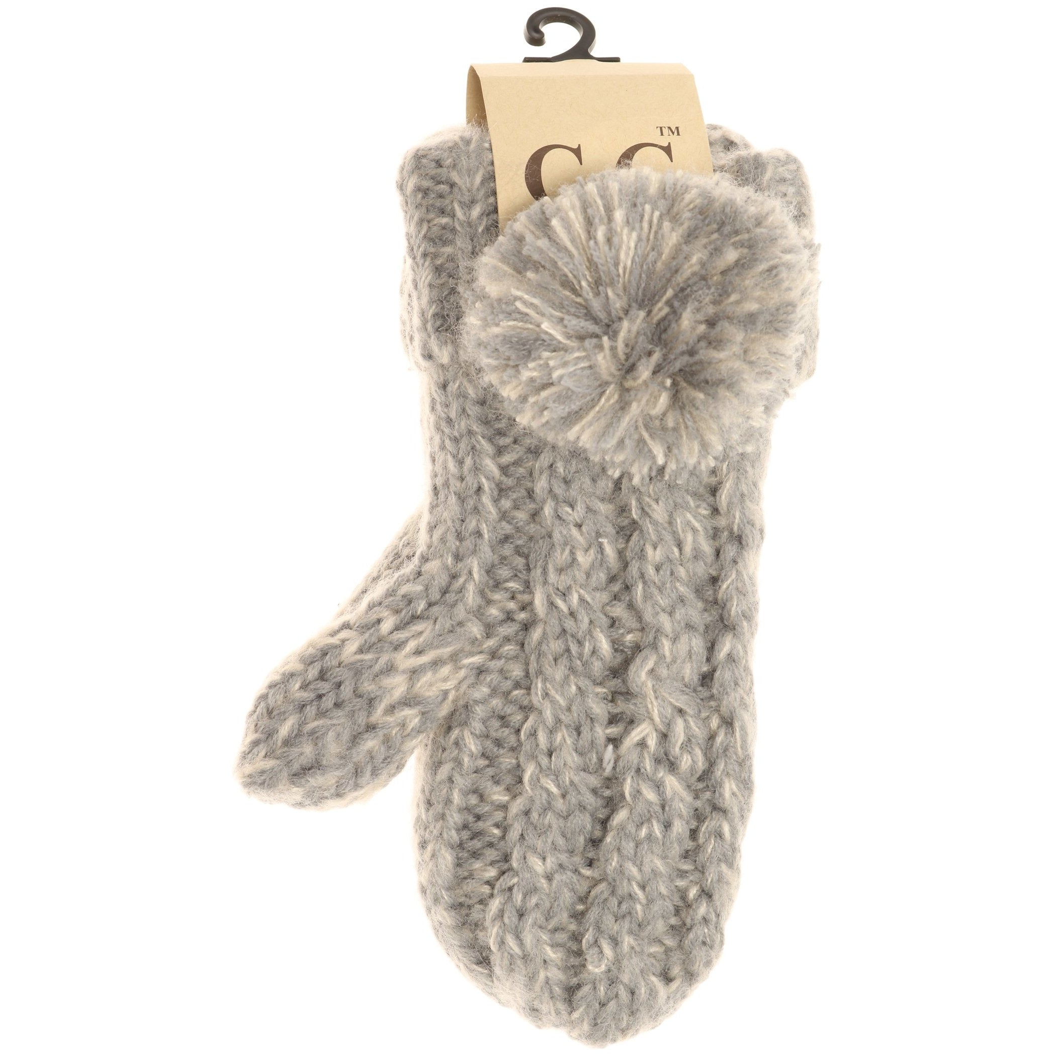 Kids CC Multi-Tone Double Pom Fuzzy Lined Mittens MT23KIDS