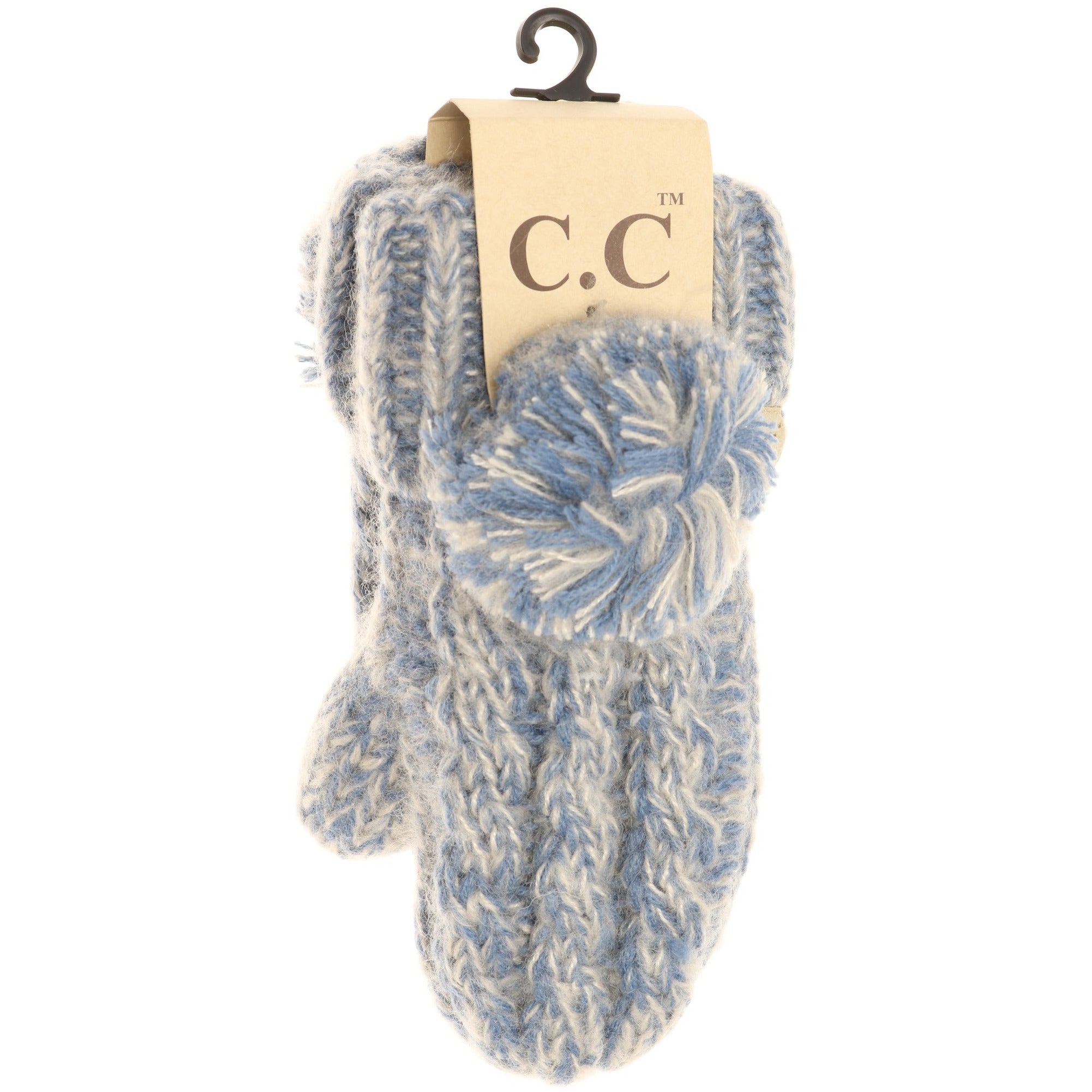 Kids CC Multi-Tone Double Pom Fuzzy Lined Mittens MT23KIDS