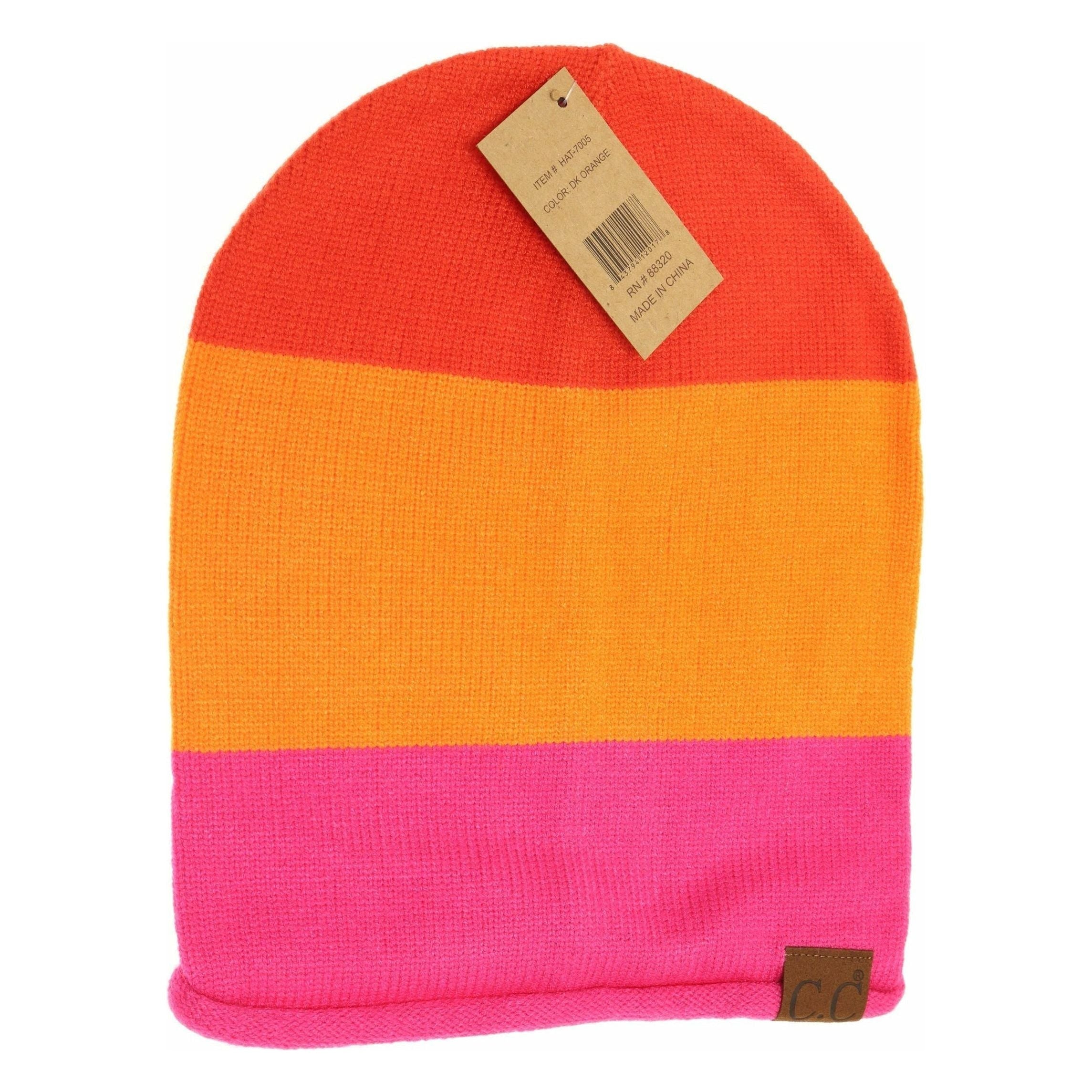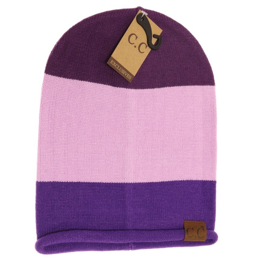 Colorblock Rolled Cuff Slouchy CC Beanie HAT7005