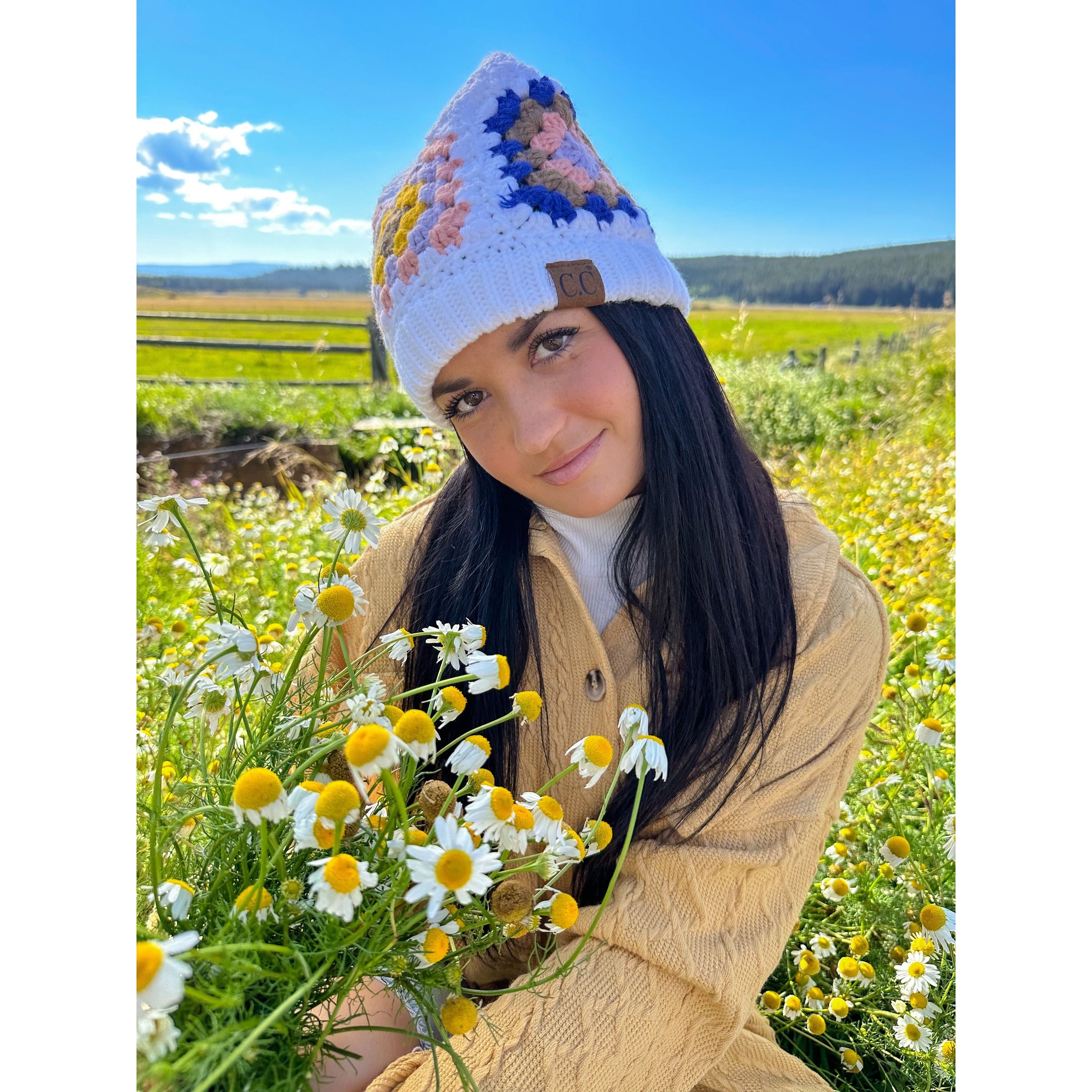 As sweet as a handmade crocheted beanie, but a HOT trend to wear with your favorite winter sweaters! This beanie is colorful and versatile for this seasons cooler temps!