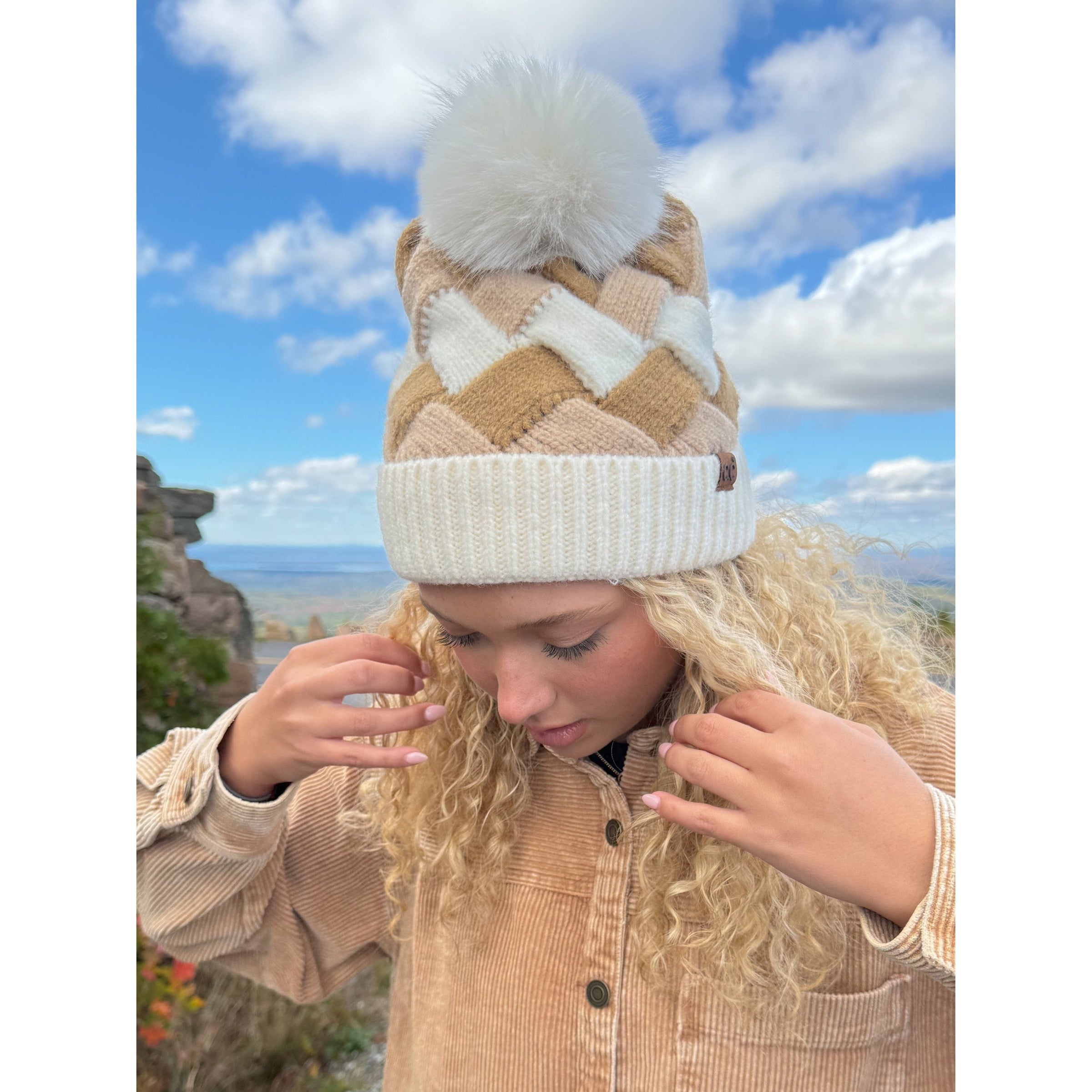 Chunky Weaved Faux Fur C.C Pom Beanie HTC0100