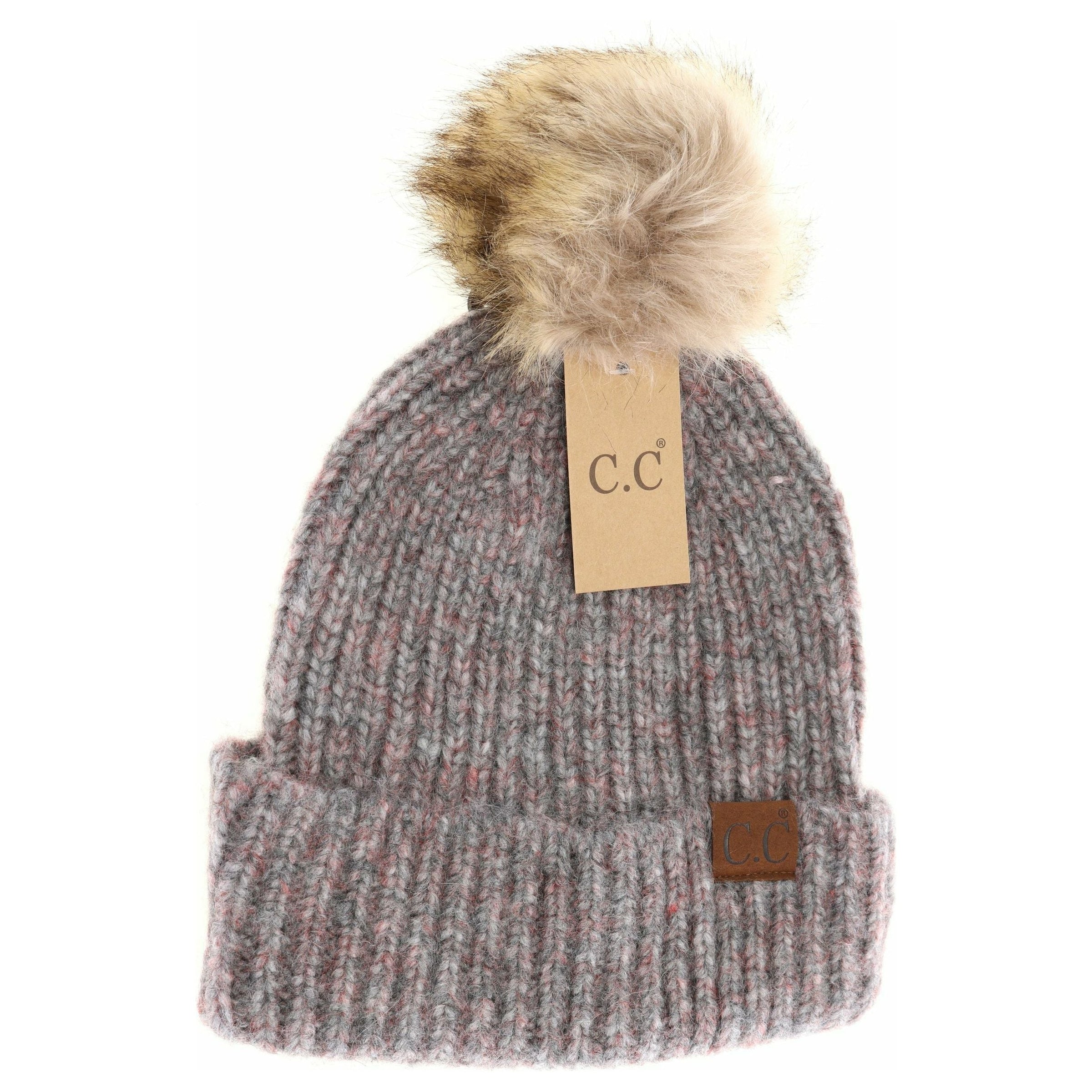 Soft Ribbed Fur Pom C.C Beanie HAT2074
