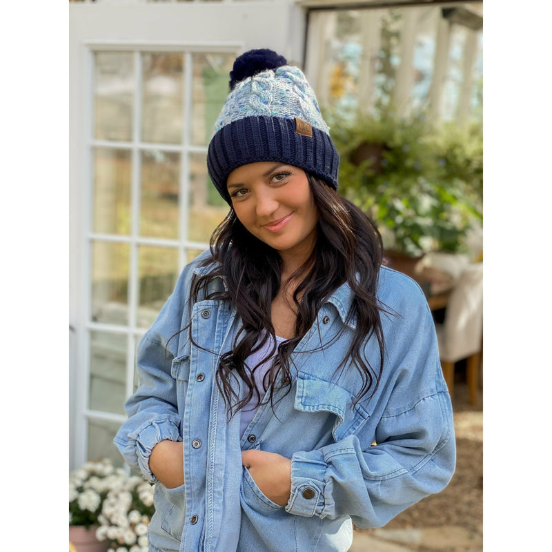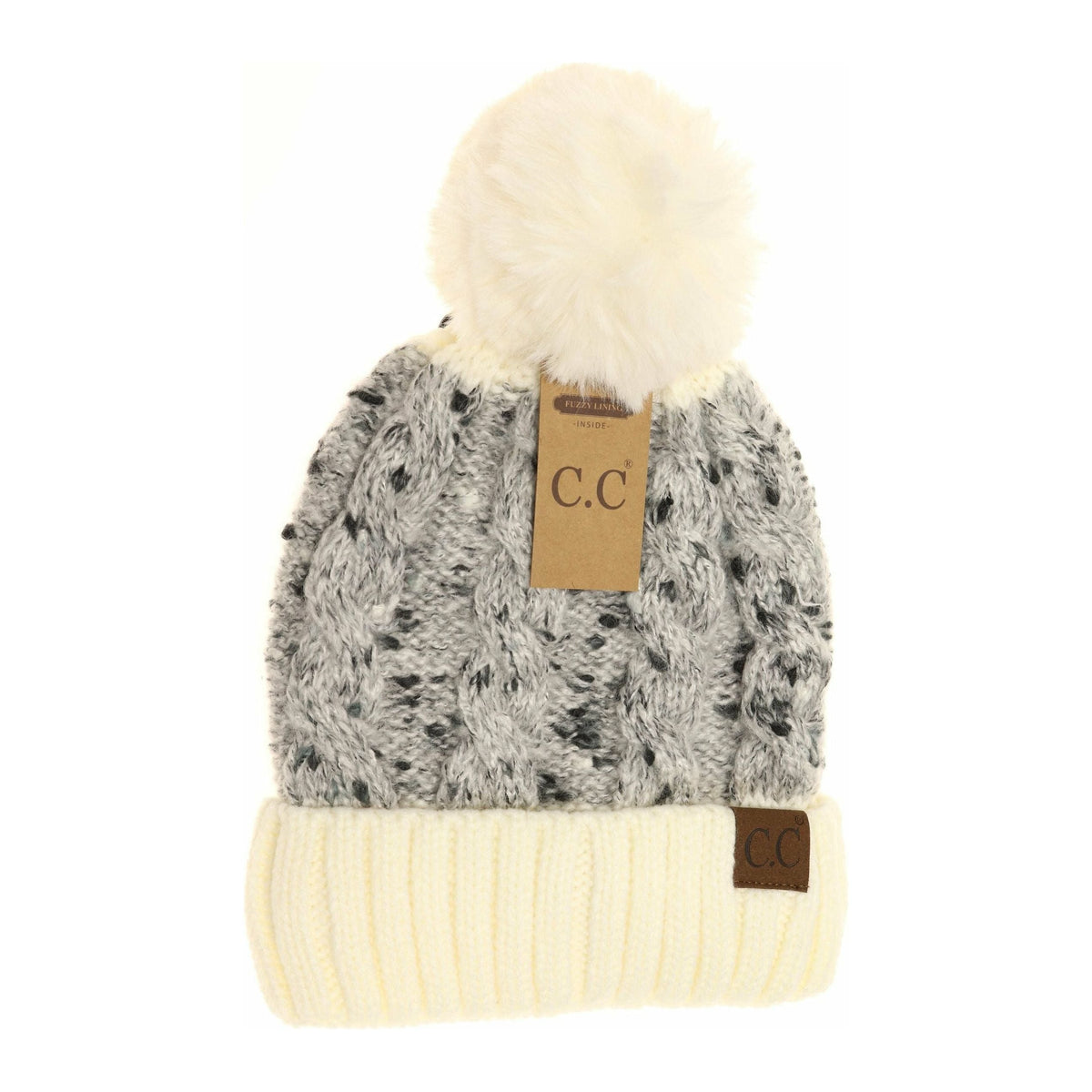 Confetti Cable Knit Faux Fur Pom Beanie HAT3621