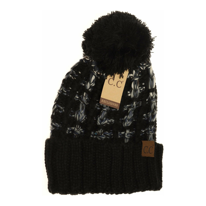 Buffalo Check Mixed Print Fur Pom C.C Beanie HAT2083