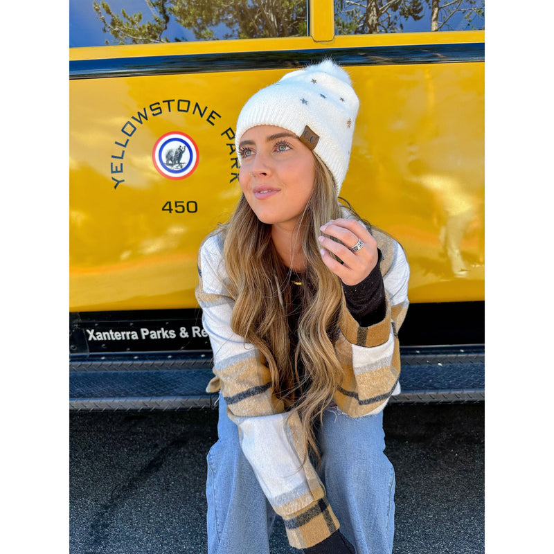 Fuzzy Lined Scatter Sequin Pom C.C Beanie HTE0034