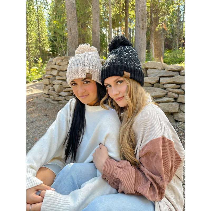 Fuzzy Lined Flecked Fur Pom CC Beanie YJ820CONFETTI