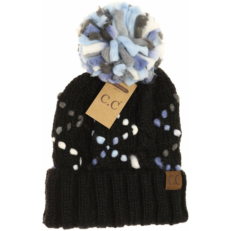 Sequin Brioche Cable Knit Fur Pom C.C Beanie HAT2073