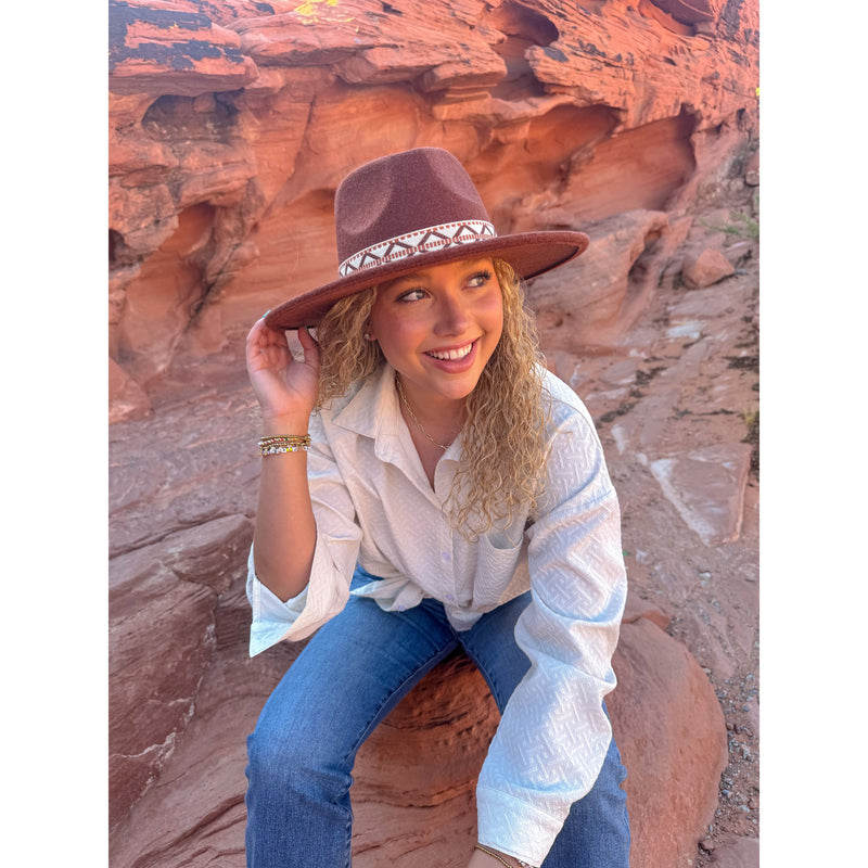 Aztec Trim Band Vegan Fabric C.C Panama Hat WF10