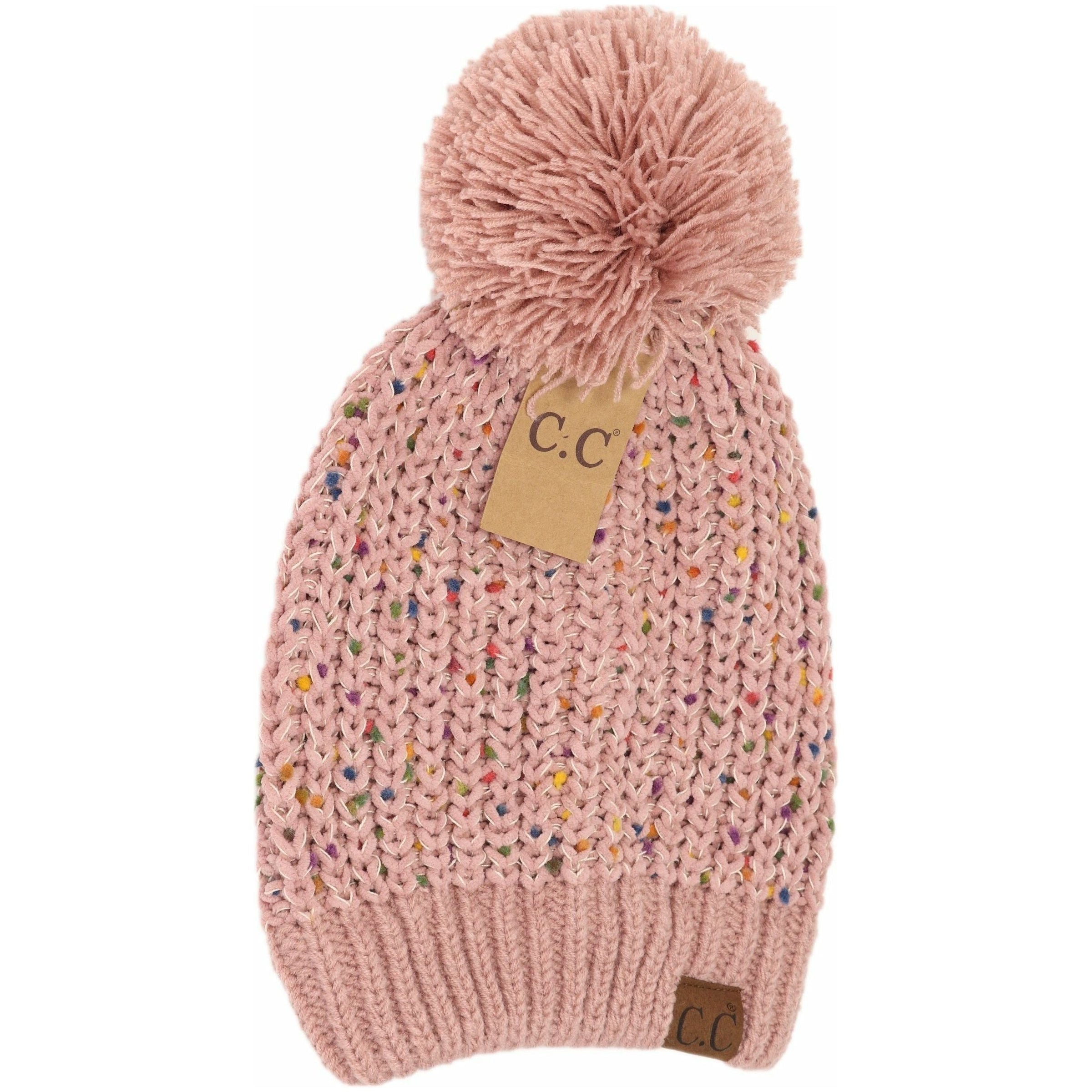 We are loving all of these yarn poms this season!  We put a solid yarn pom on everybody's favorite confetti beanie to make this adorable beanie pop!