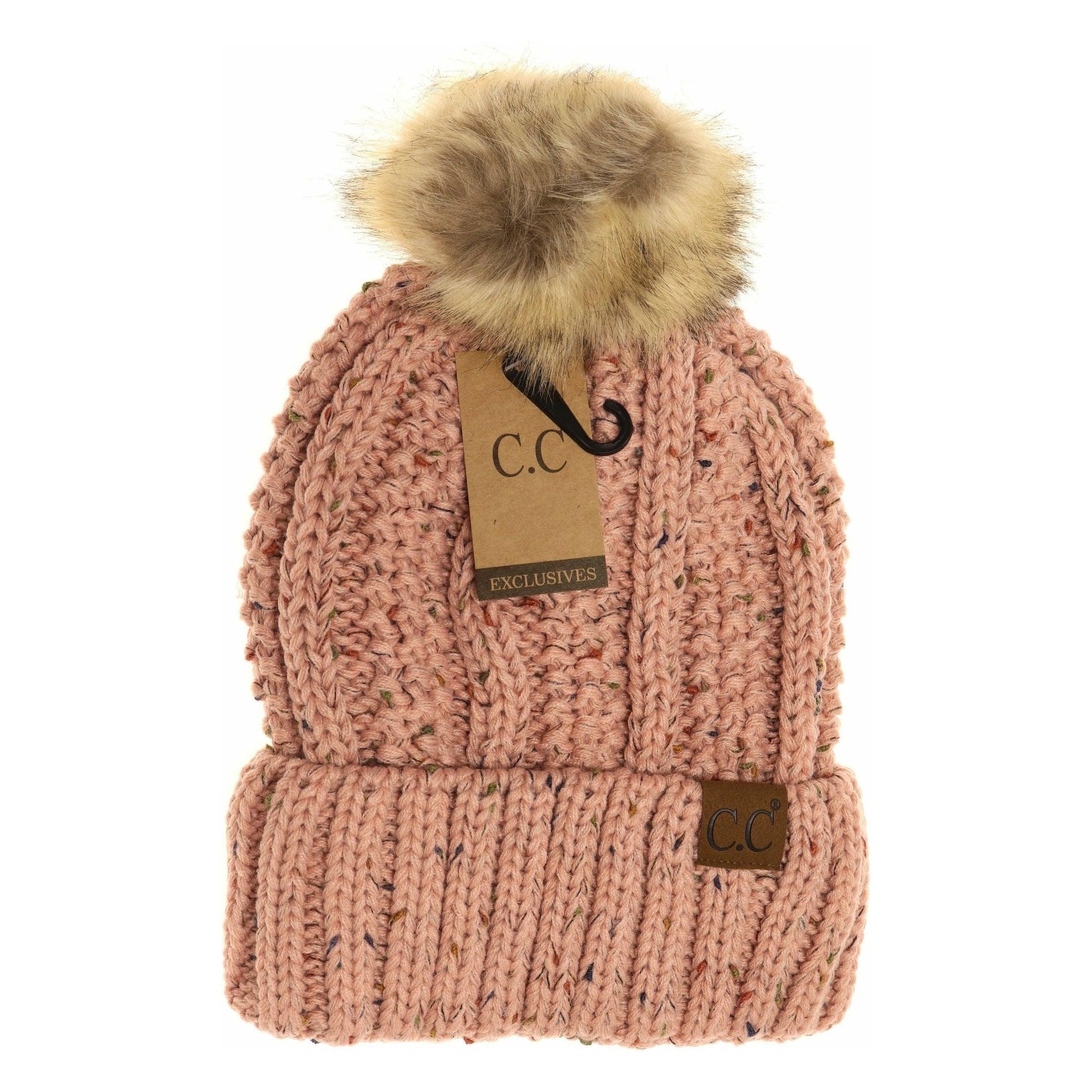 Fuzzy Lined Flecked Fur Pom CC Beanie YJ820CONFETTI