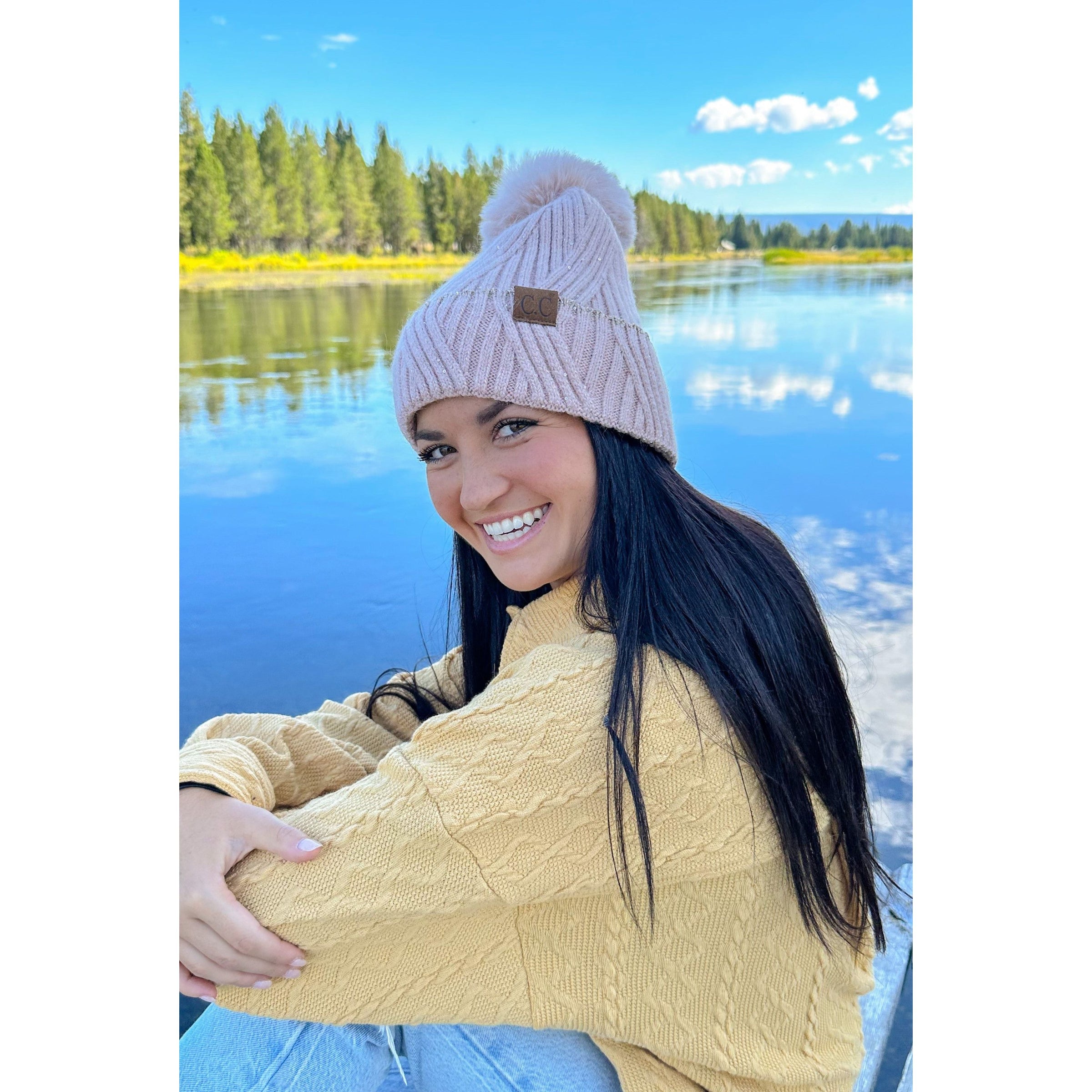 Scatter Sequin Faux Fur Pom C.C Beanie HTS0006