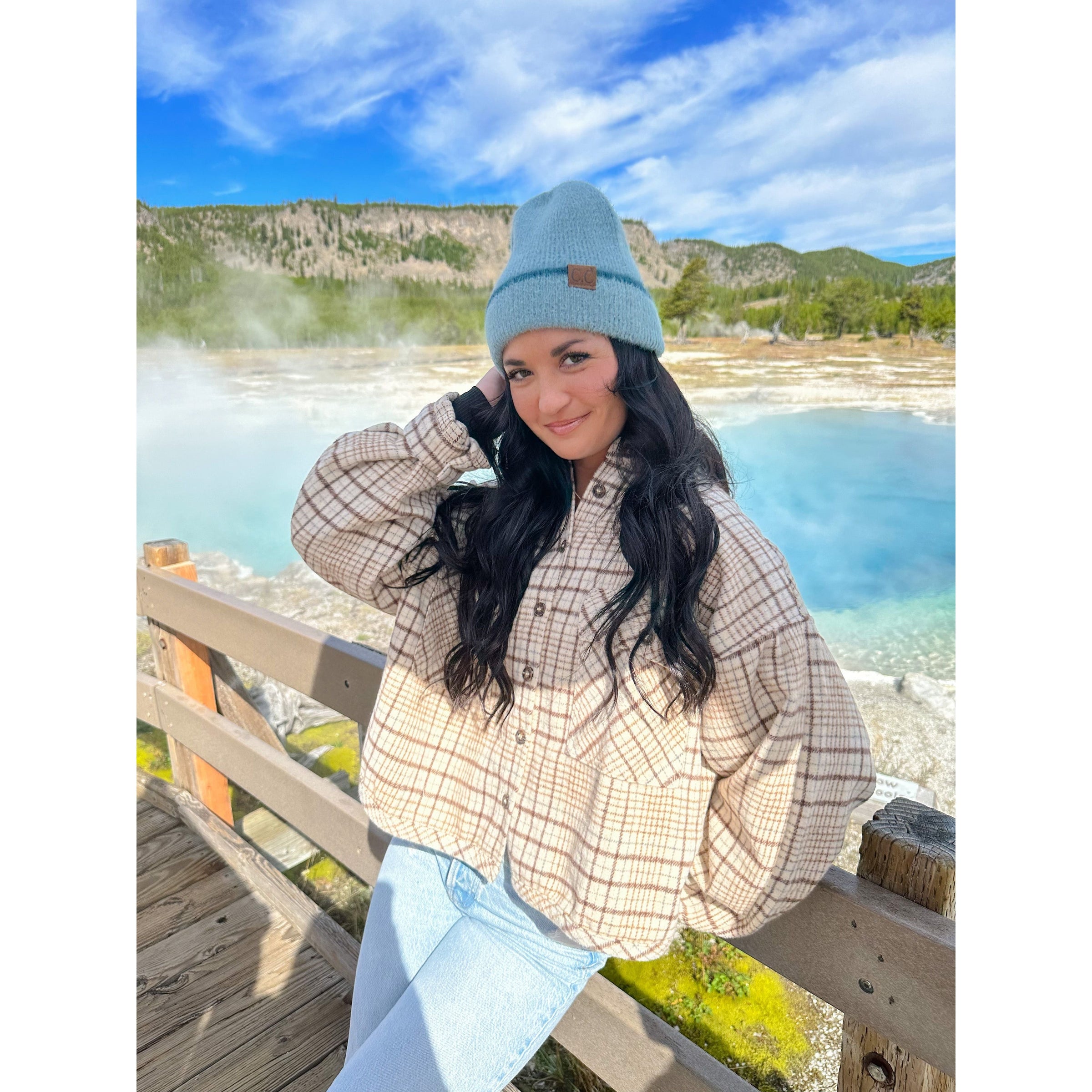 The softest feather yarn was used to create this classic cuffed beanie with a trendy stripe. Great for outdoor activities!