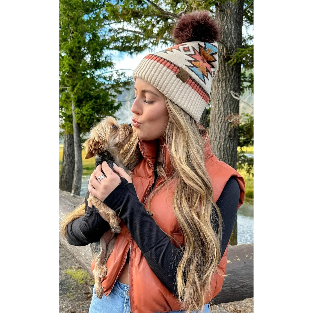 Southwestern Faux Fur Pom C.C Beanie HTE0030